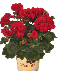 Pelargonium zon. Savannah® Really RedKasvutüüp: keskmine, pooltäidis, Õiesuurus: suur |